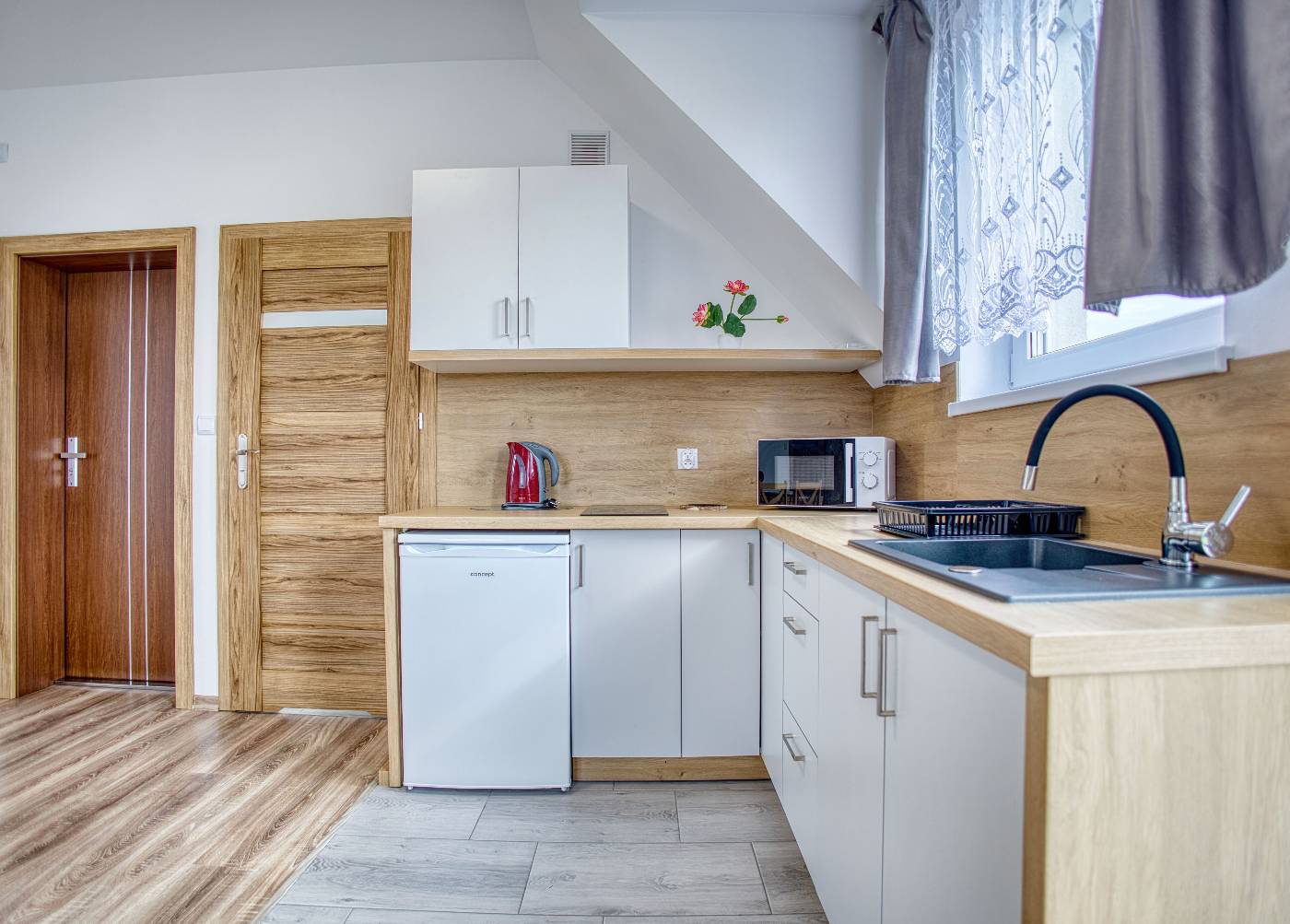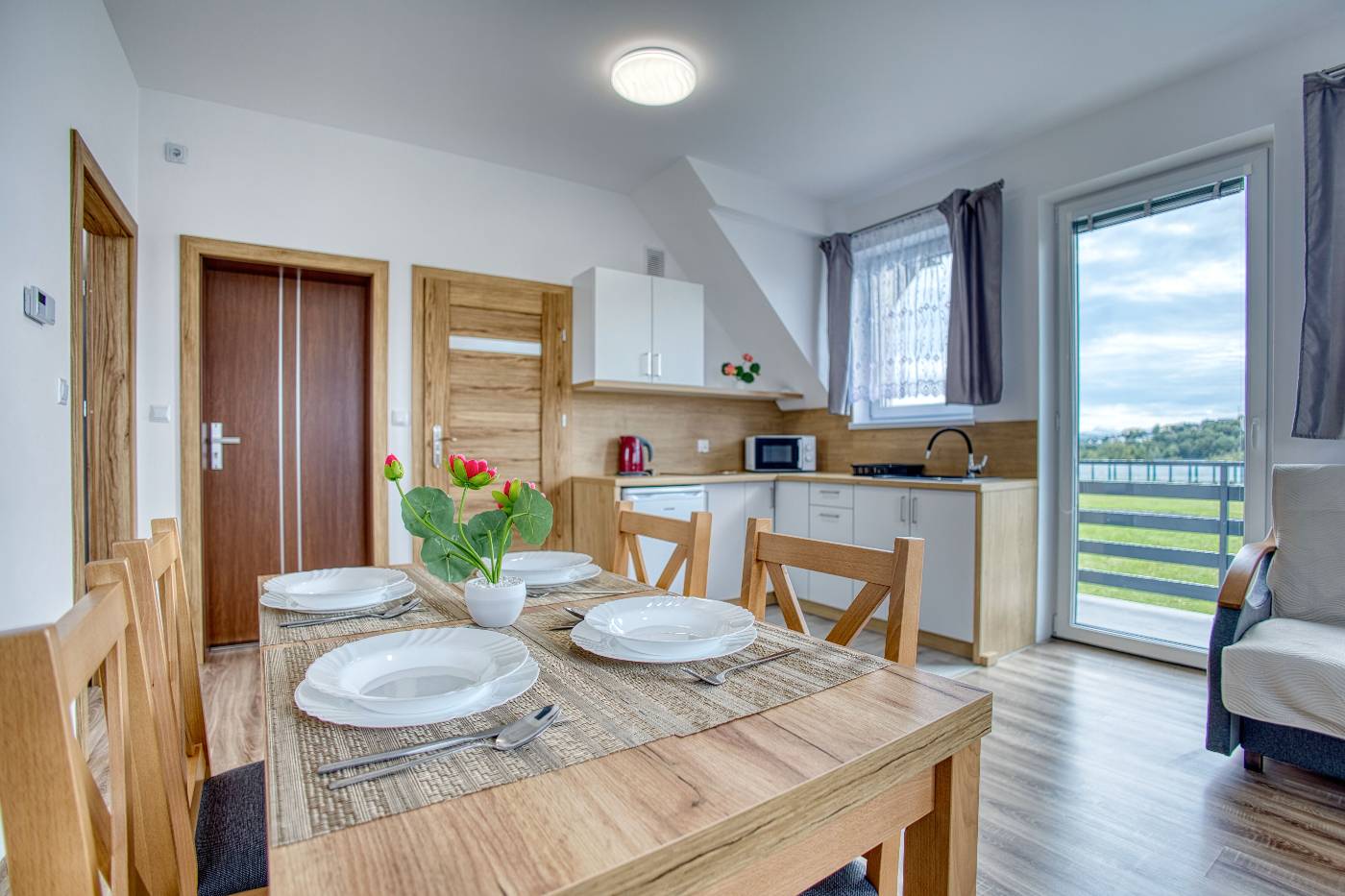 - Komfortowe apartamenty z prywatnymi łazienkami i aneksami kuchennymi